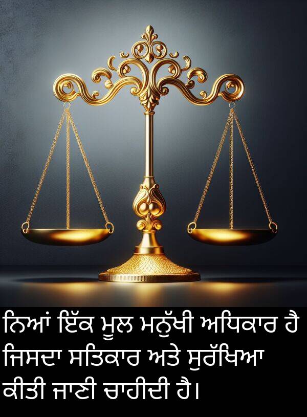 ਨਿਆਂ ਇੱਕ ਮੂਲ ਮਨੁੱਖੀ ਅਧਿਕਾਰ ਹੈ ਜਿਸਦਾ ਸਤਿਕਾਰ ਅਤੇ ਸੁਰੱਖਿਆ ਕੀਤੀ ਜਾਣੀ ਚਾਹੀਦੀ ਹੈ।